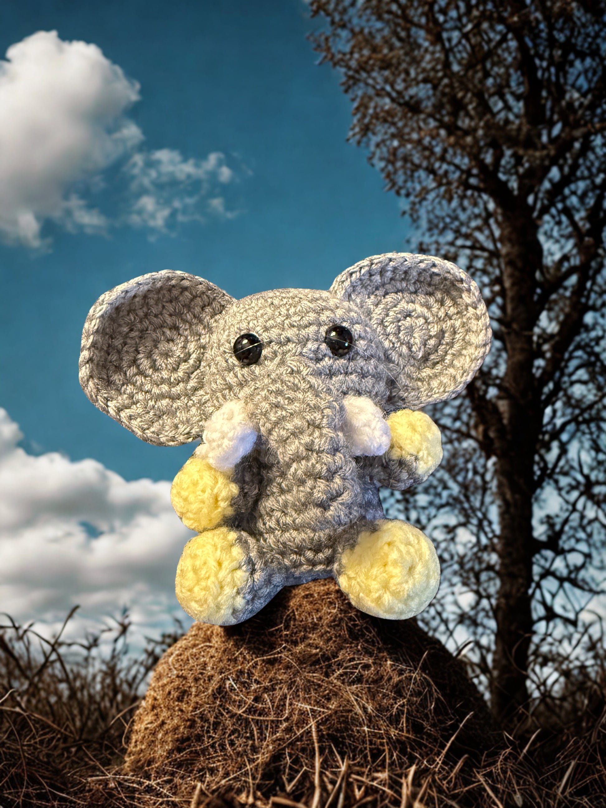 Say hello to Tilly, the sweet little elephant who’s full of charm and ready for cuddles! Hand-crocheted with love, Tilly’s soft grey body, sunny yellow feet, and wide, floppy ears make her the perfect pocket-sized pal.
